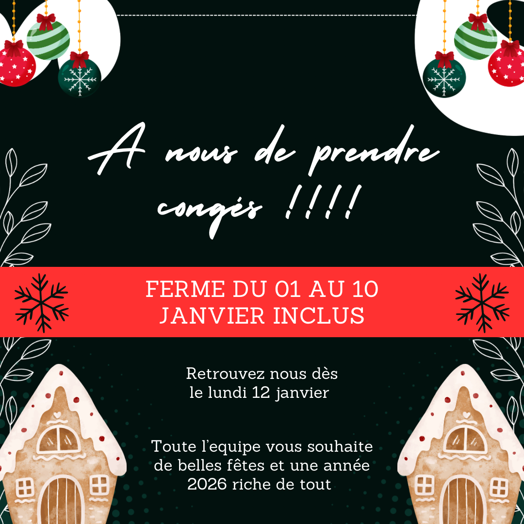 Quelques jours de repos après les fêtes ... Toute l'équipe vous souhaite une belle et heureuse année 2026